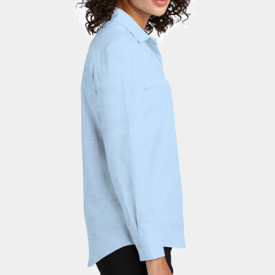 You will be adding a decoration to the Front Left Chest of the Women's Long Sleeve Stretch Woven Shirt.